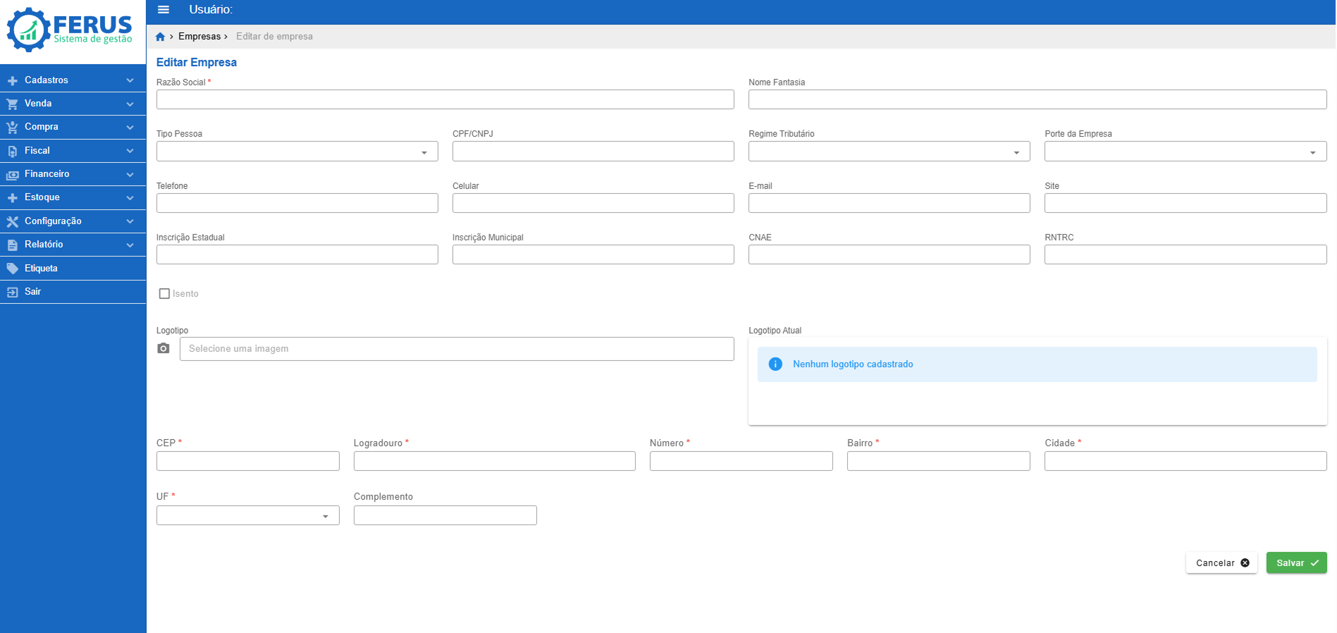 Antes de qualquer configuração fiscal, preencha corretamente todos os dados do cadastro da empresa.