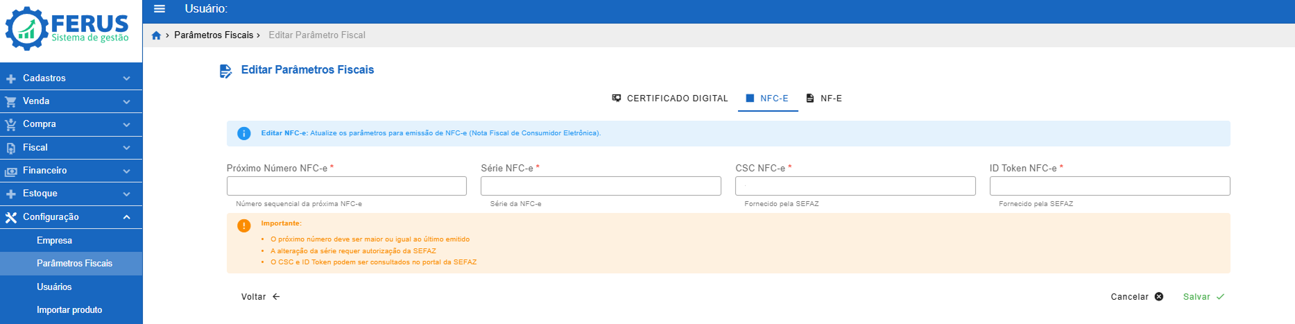 Após inserir essas informações, prossiga para a aba NFC-e.